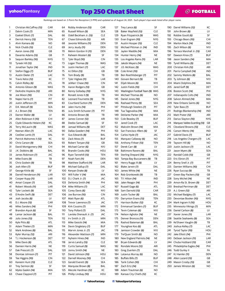 Fantasy football cheatsheet. Here are some players who I dont trust enough to place on my 2021 squads based on Yahoo ADP. If you havent drafted your fantasy football team already youll be doing so soon.
