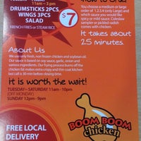 Order online from Boom Boom Chicken on MenuPages. Delivery Pickup Options - 205 reviews of Boom Boom Chicken Nice Place simple and to the point Chicken either spicy or mild I ordered the large order that carried between 18-20 pieces of chicken wings and drums. Contact Boom Boom Chicken on.